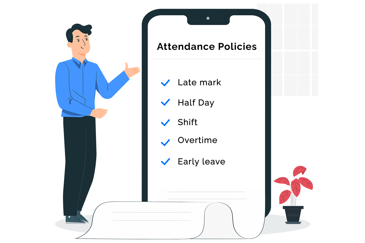 100% accurate time tracking. Automatically calculates exact hours clocked in. Takes into account late marks, break time, OT, half days, leaves, and more. Over 70 + customizable policies to automate time tracking. Makes payroll a breeze.