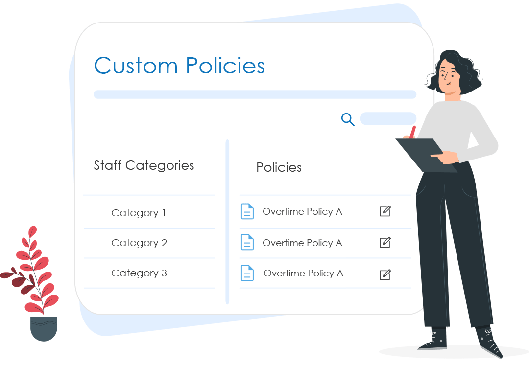 Create custom overtime policies to meet your specific needs. Utilize over 70 existing policies to ensure precise time and attendance tracking.
